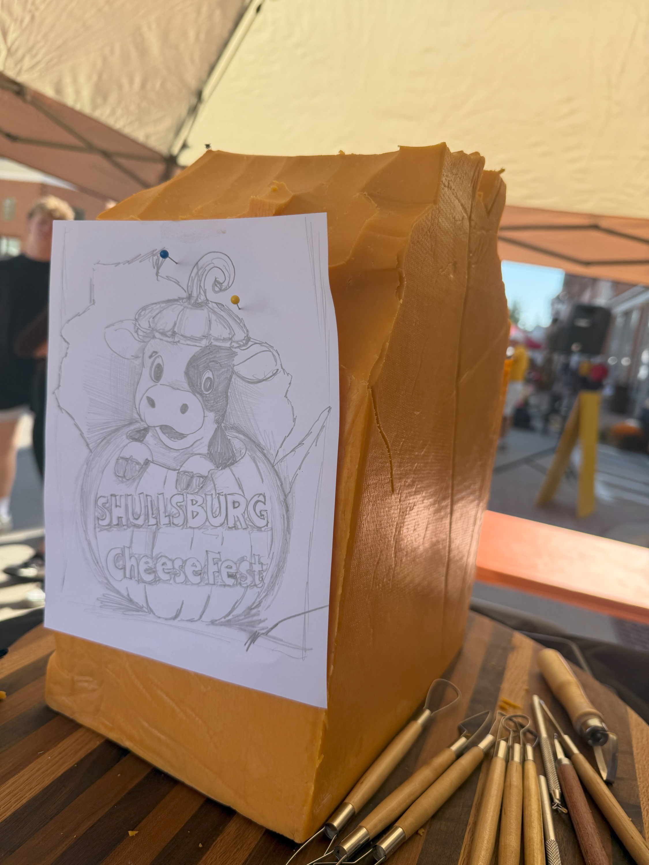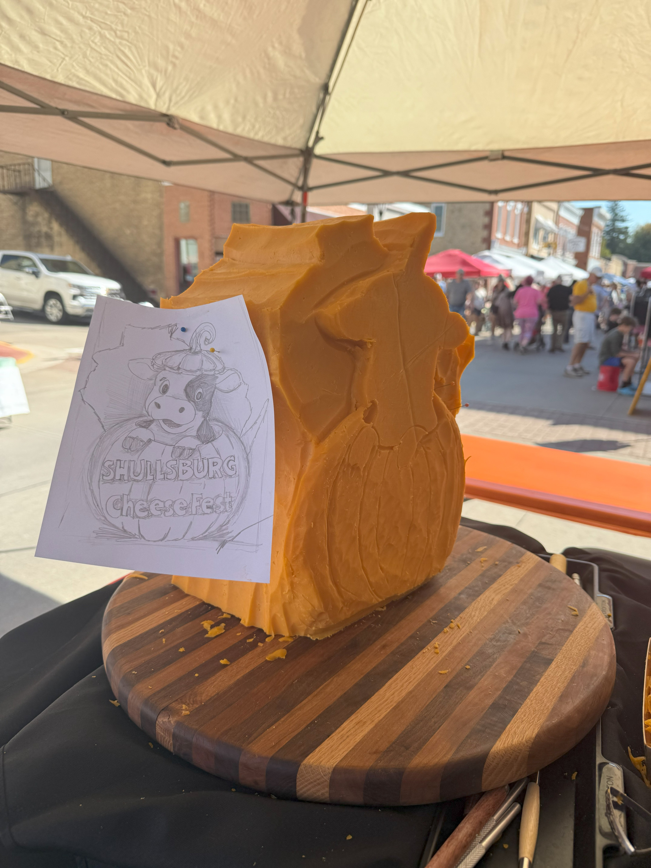 Yes—it did! The finished piece made its way over to the Shullsburg Cheese Store so visitors could keep enjoying it after the festival. It’s always fun seeing it on display there—it feels like a full-circle moment.